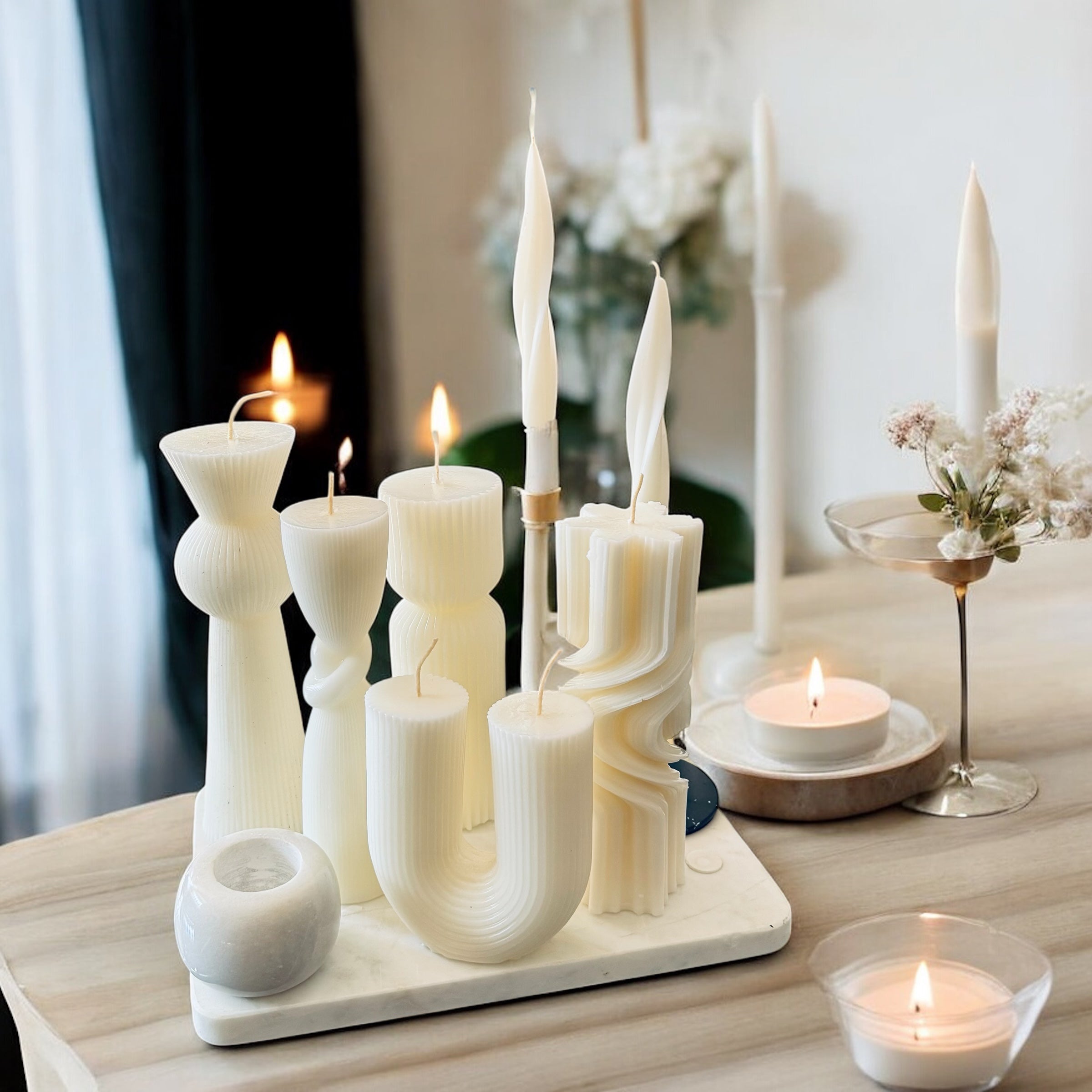 🕯️ Skulpturkerzen-Set „Pure Cream“ – 8-teilig
