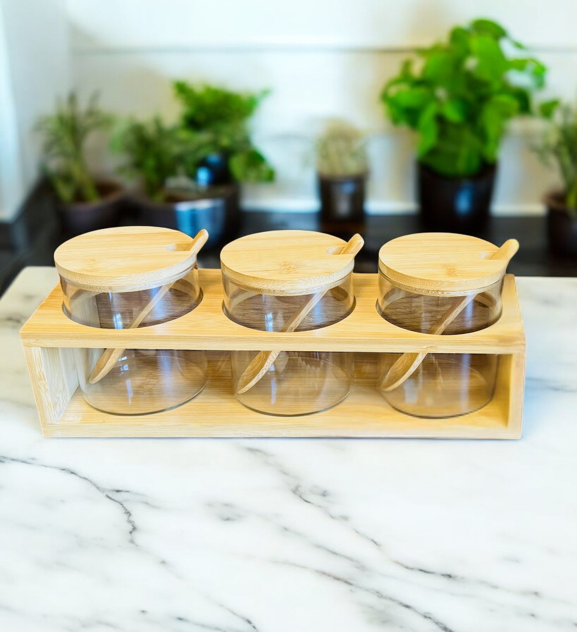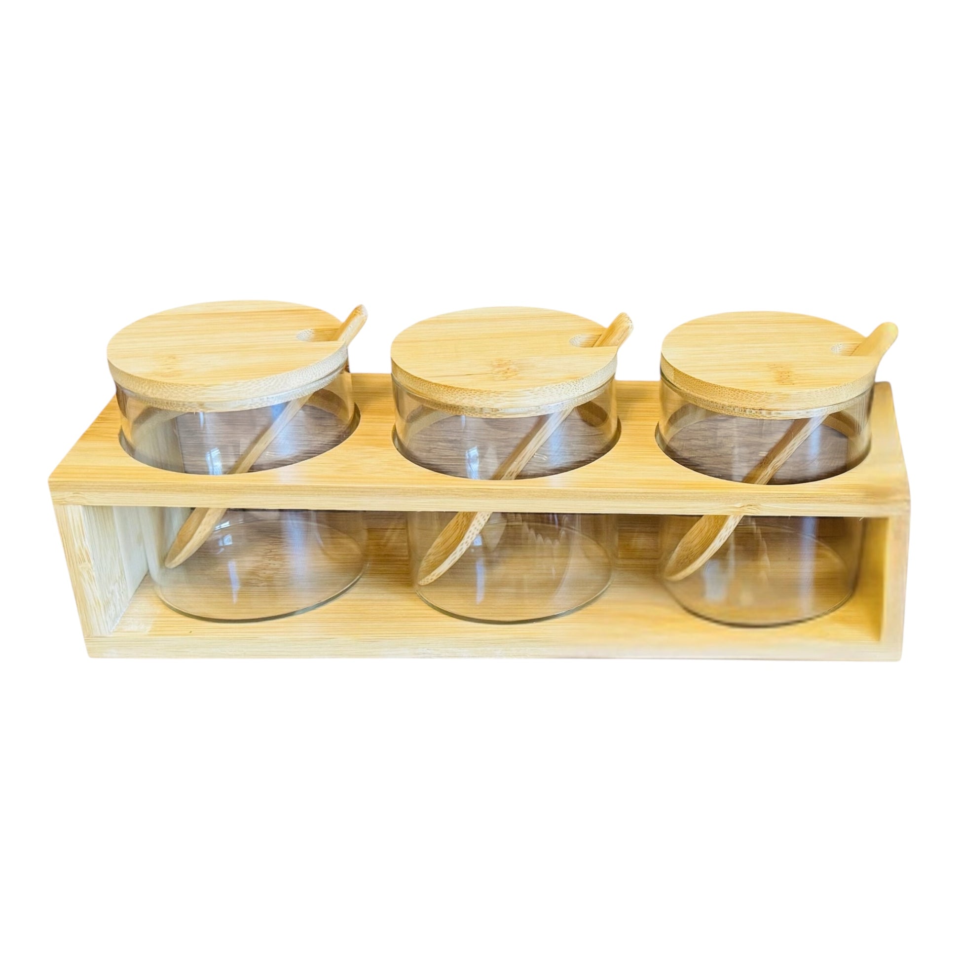3-teiliges Gewürzgläser-Set mit Bambuslöffel & Halterung