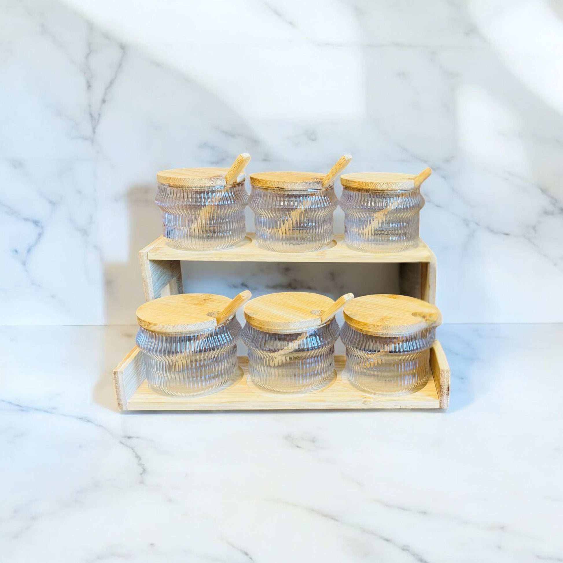 Gewürzgläser-Set mit Bambusdeckel & Löffel-6-TEILIG INKL.Holzregal